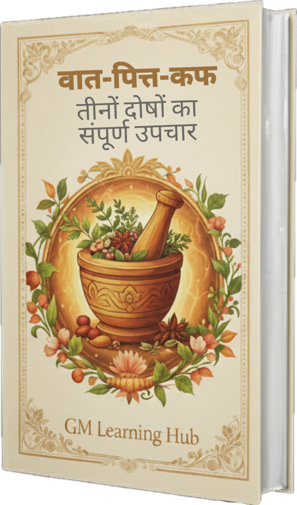 आयुर्वेद के अनुसार हमारे शरीर में वात, पित्त और कफ — ये तीनों दोष संतुलन में रहें तो व्यक्ति स्वस्थ रहता है, और जब इनमें असंतुलन होता है तो रोग उत्पन्न होते हैं। इस पुस्तक में सरल शब्दों में बताया गया है कि वात, पित्त और कफ क्या हैं, इनके लक्षण कैसे पहचाने जाएँ और रोज़मर्रा की आदतों से इन्हें कैसे संतुलित रखा जाए।